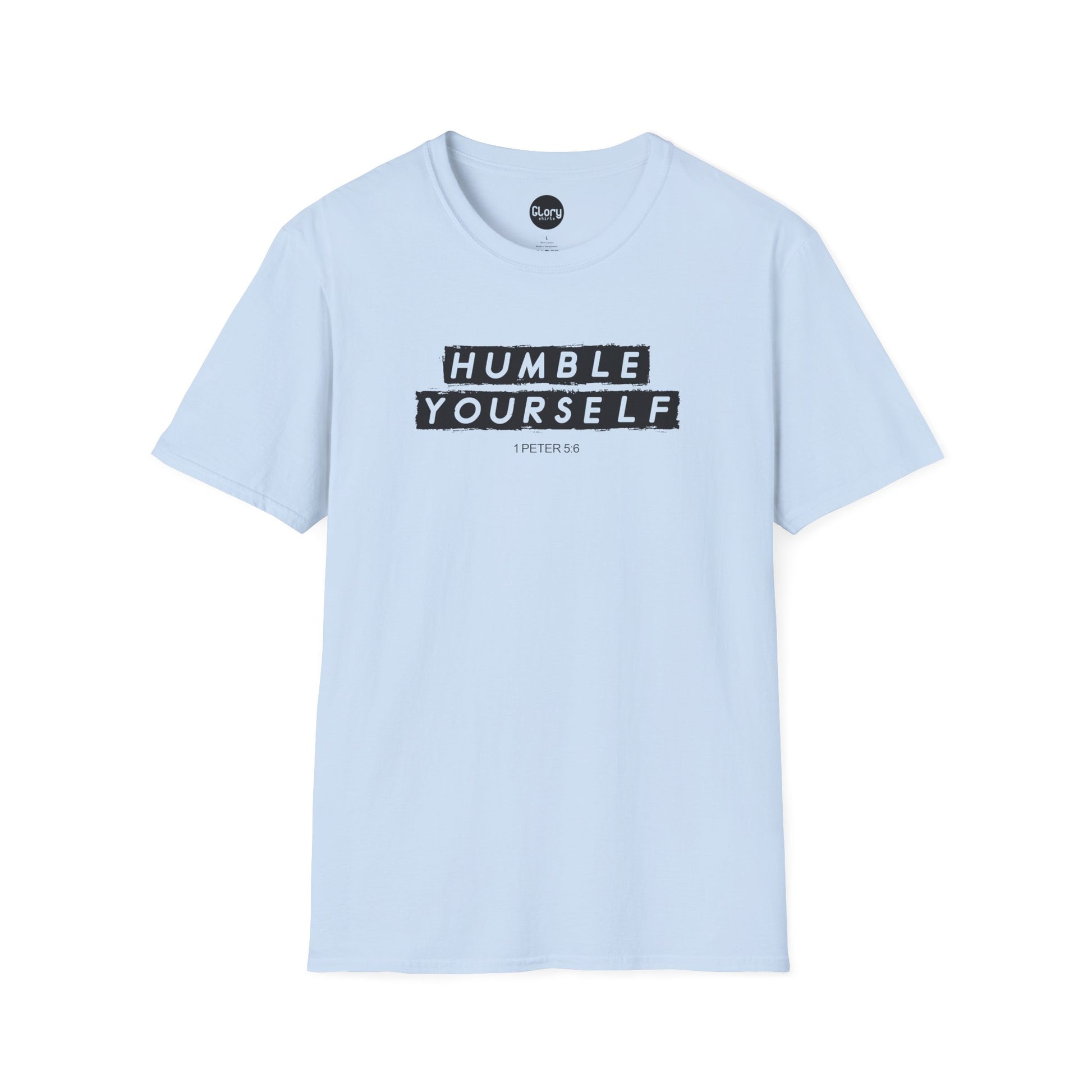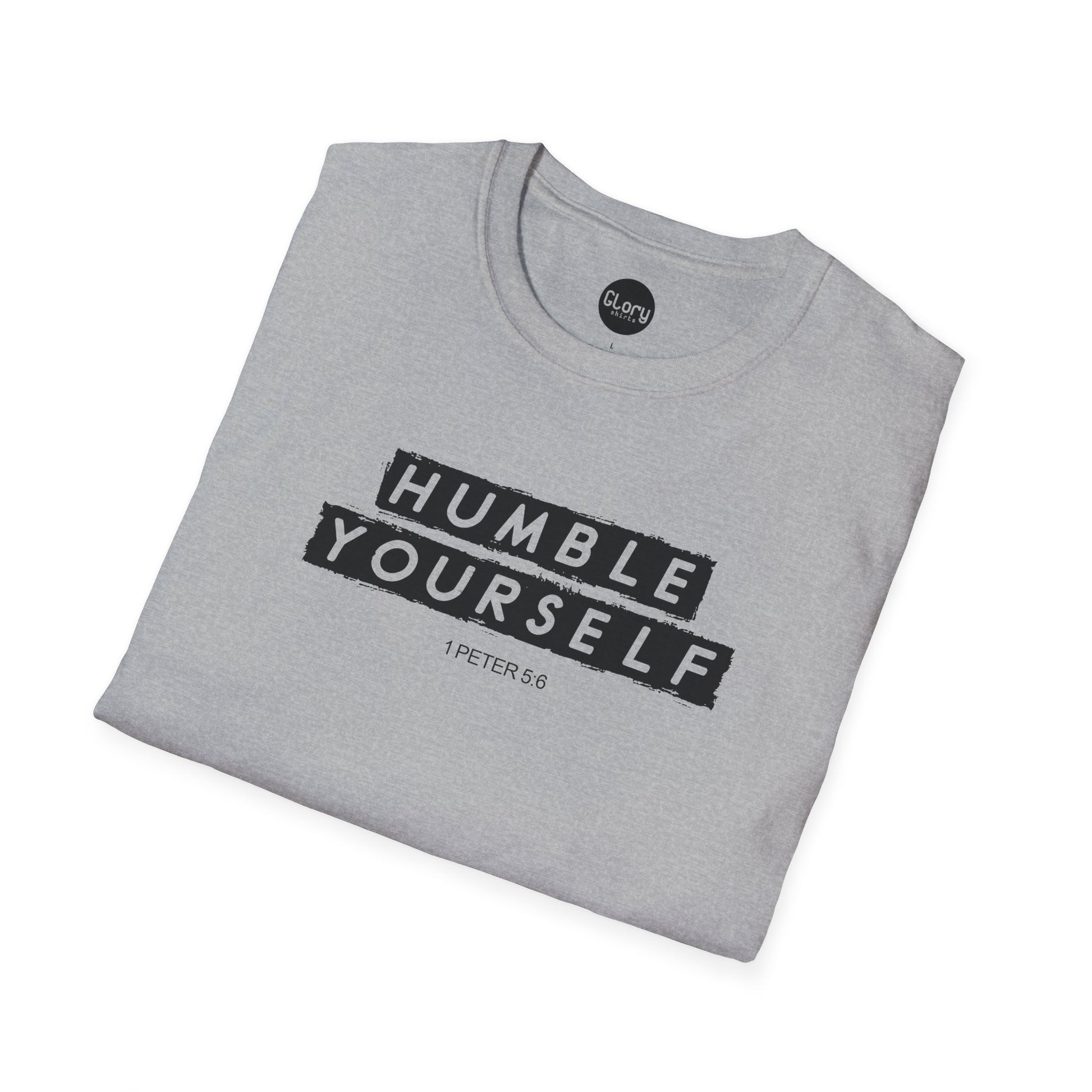 The Humble Yourself shirt is based on 1 Peter 5:6: "Humble yourselves, therefore, under God’s mighty hand, that he may lift you up in due time. Cast all your anxiety on him because he cares for you."