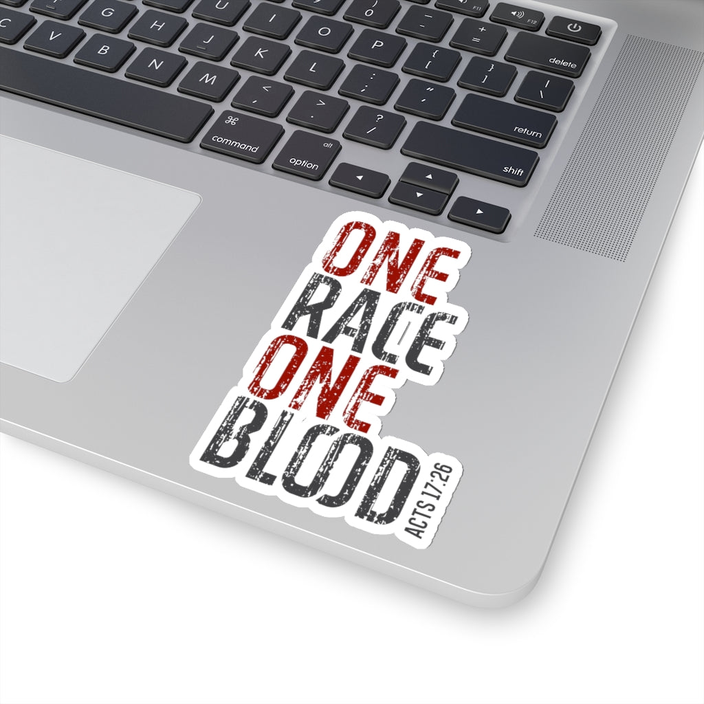 One Race. One Blood sticker based on Acts 17:26: "And hath made of one blood all nations of men for to dwell on all the face of the earth, and hath determined the times before appointed, and the bounds of their habitation." We are all of the human race. Created in the image of God! Put it on your laptop, skateboard, phone, or anywhere you want to share the message with the world! .: For indoor use .: Not waterproof .: Four sizes to choose from .: White or transparent .: Only PNG design format supported .: Grey adhesive left side for white stickers