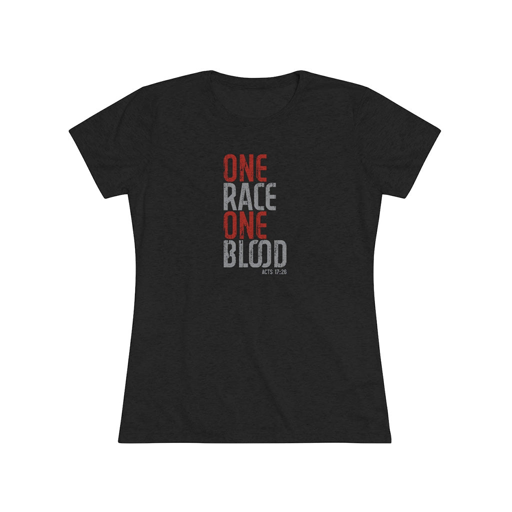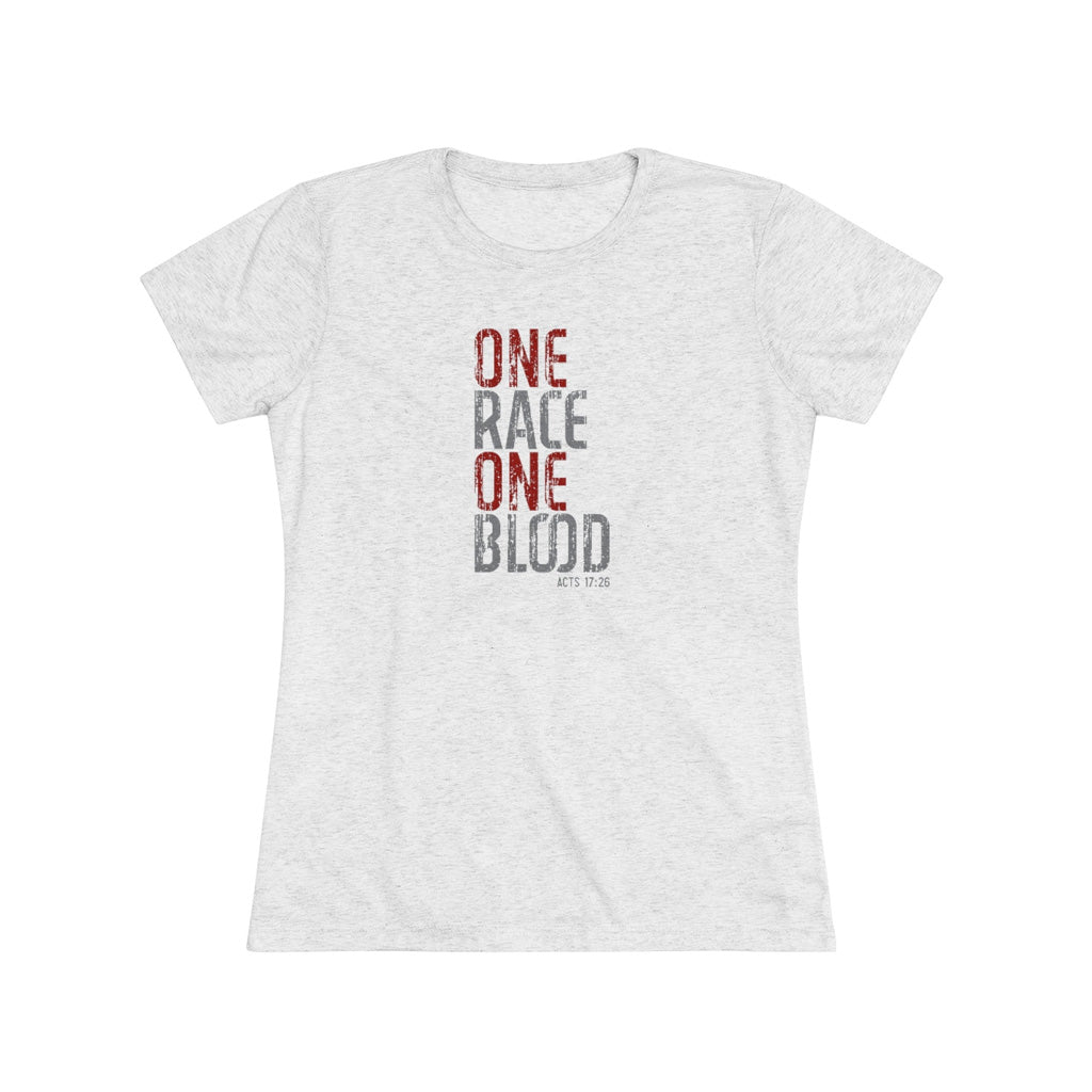 "One Race. One Blood" is based on Acts 17:26: "And he made from one man every nation of mankind to live on all the face of the earth, having determined allotted periods and the boundaries of their dwelling place." We are all of the human race created by God! This cozy and perfect fit t-shirt is a triple fabric blend that is incredibly soft with great drape, stretch, and recovery. Made of warm polyester, combed ring-spun cotton and rayon, it is not only a cozy beauty but also made to last. Grab it in plain or heathered colors for that perfect basic with a vintage look. .: 50% Polyester 25% Combed Ring-Spun Cotton 25% Rayon .: Extra light fabric (4.3 oz/yd² (145 g/m²)) .: Sewn in label .: Slim fit .: Runs true to size