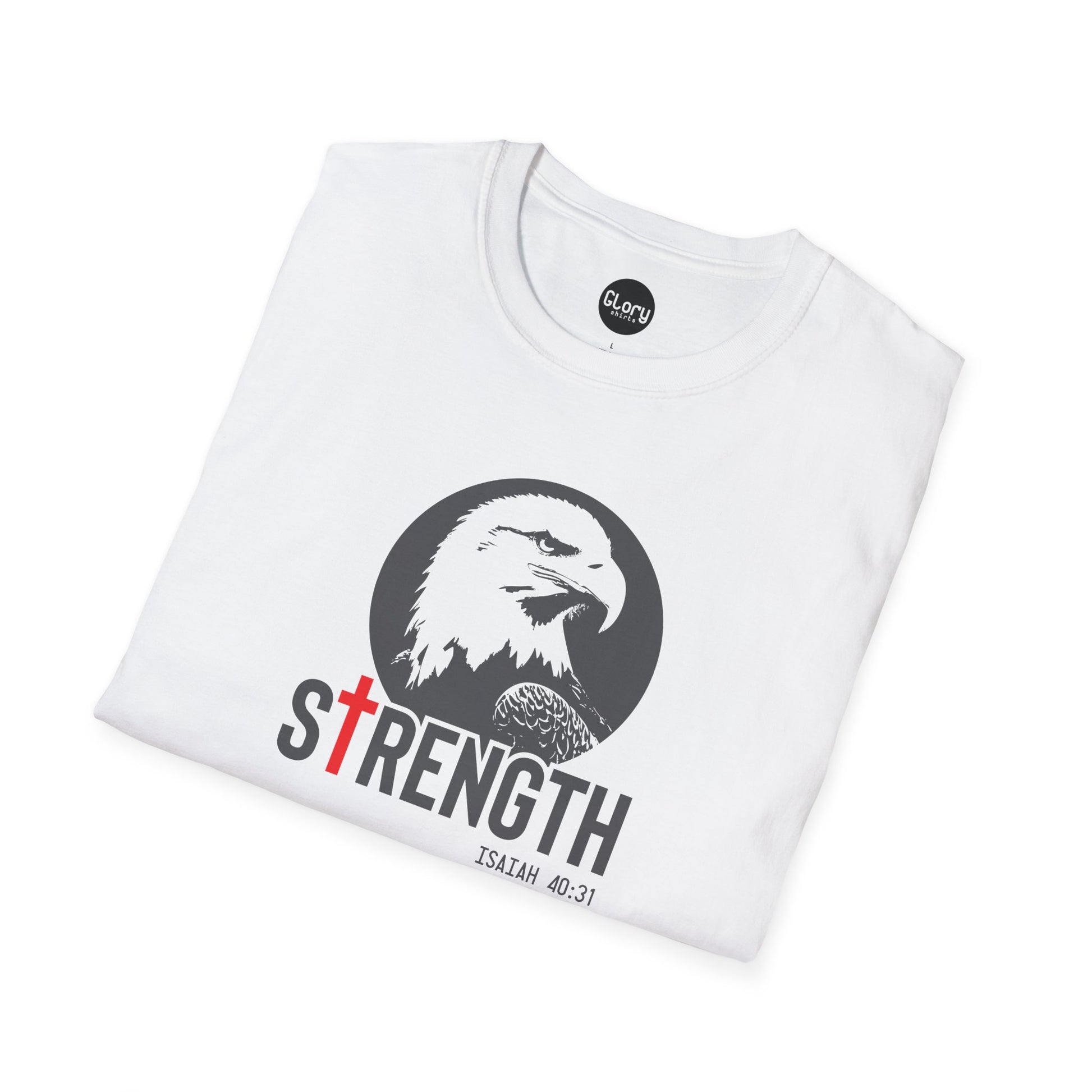 The Wings Like Eagles shirt is based on Isaiah 40:31 which contains a great promise of strength for the weary: “they who wait for the Lord shall renew their strength; they shall mount up with wings like eagles; they shall run and not be weary; they shall walk and not faint.”"